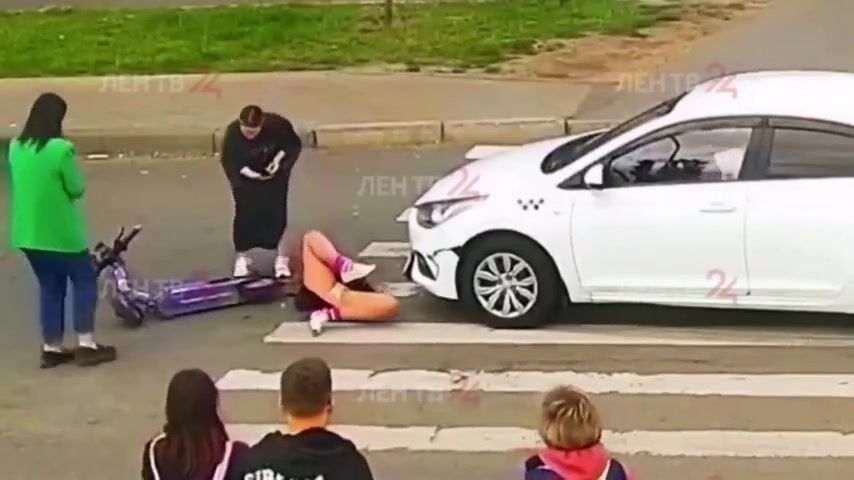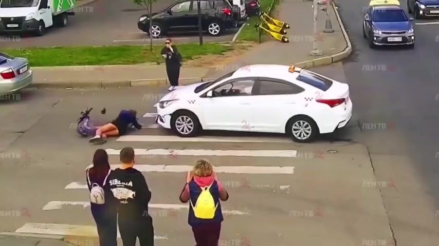 Young Scooter Girl has not yet Learned Traffic Rules