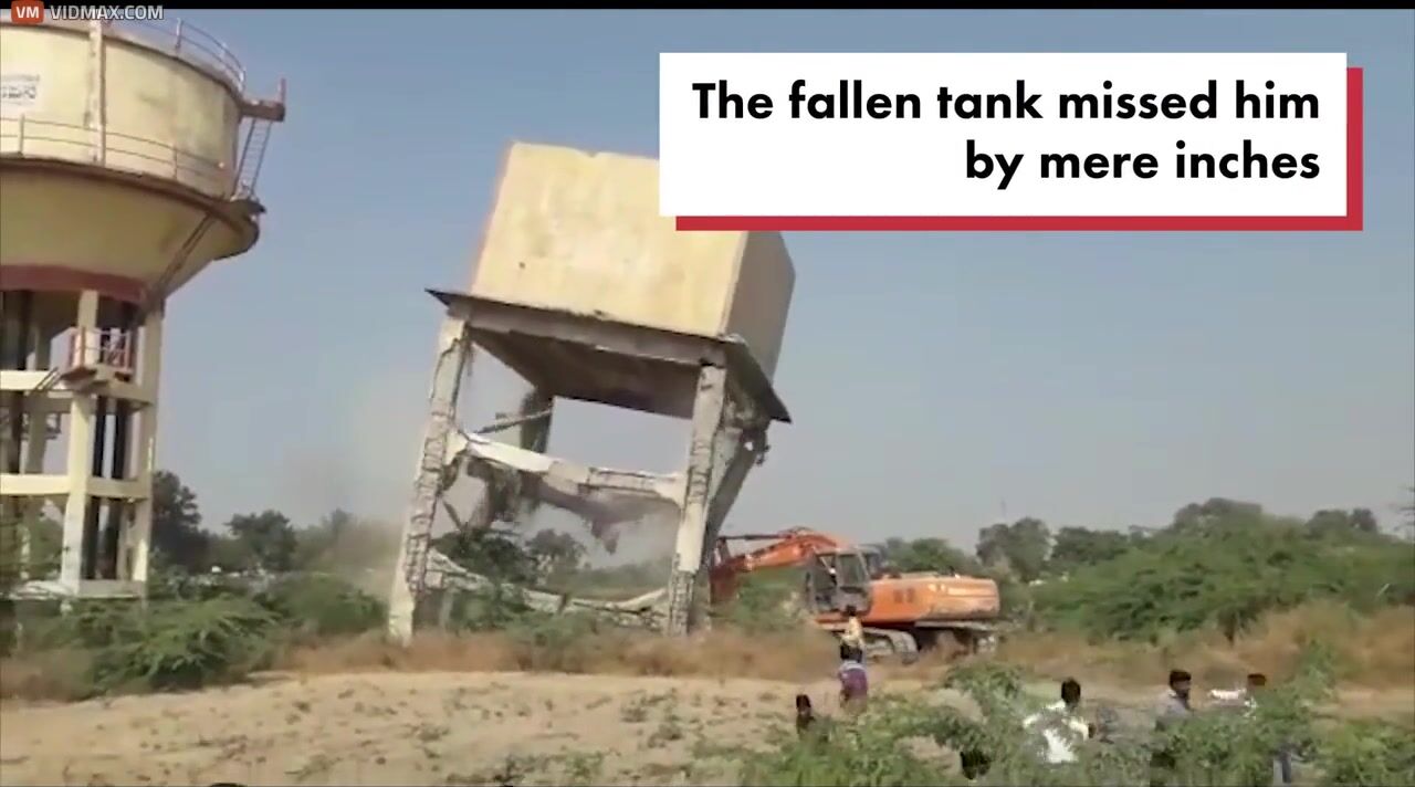 A Falling Water Tank Crushed A Man By Nearly An Inch