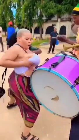 Playing Drums With Her Big Fat Tits