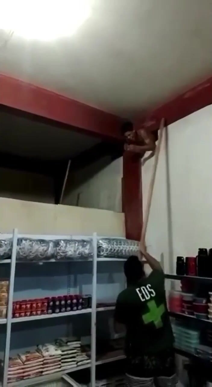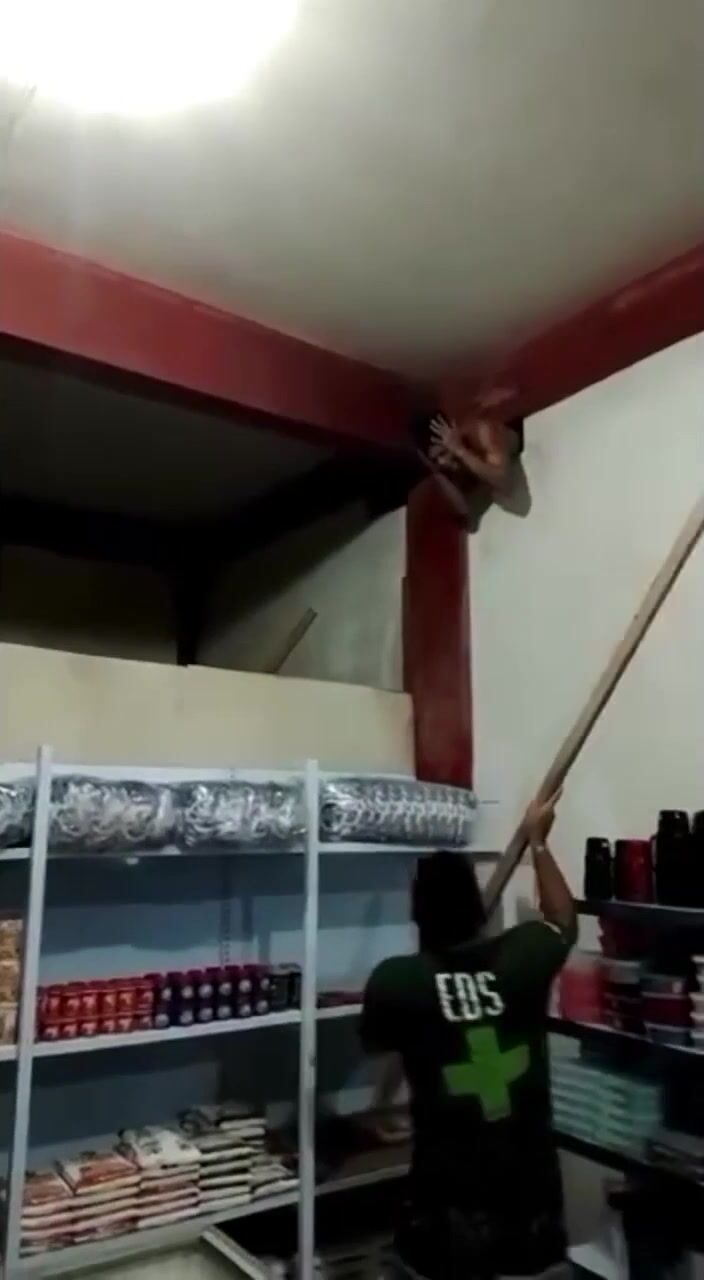 Thief Stuck In Wall And Beaten With Sticks Like A Piñata